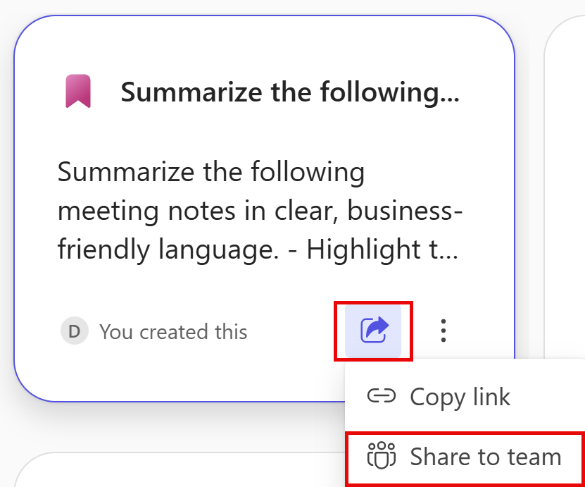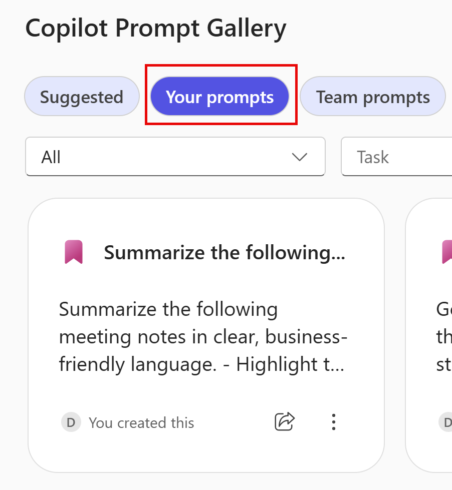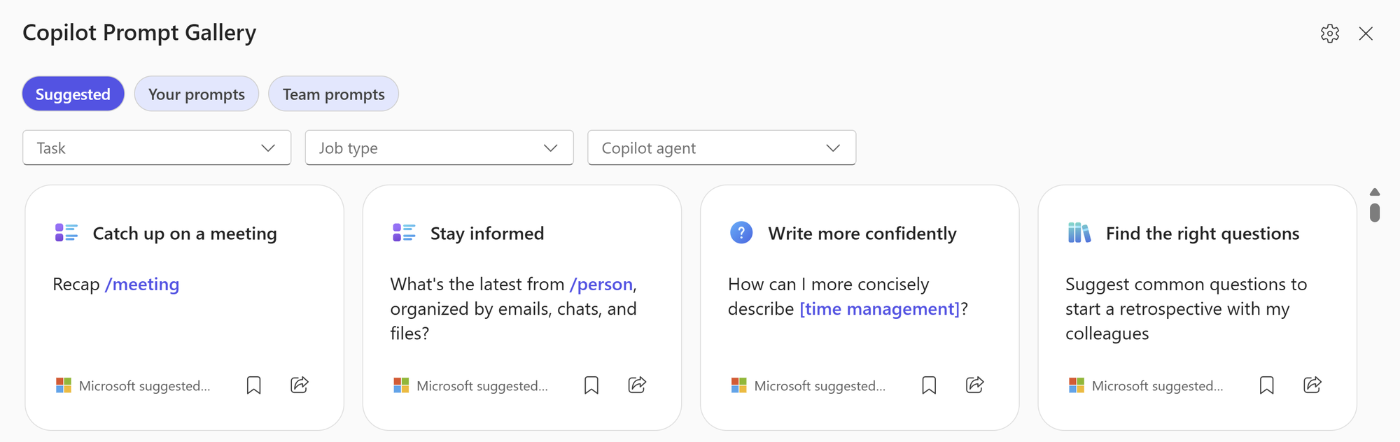 The power of sharing prompts with your teams is that they're instantly available directly in Copilot. No separate document, lists, or group chats to search through. The next time they open Copilot, your prompt is right there in the Prompt Gallery, ready to use!